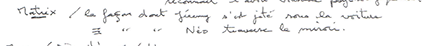 Ci-joint à ce propos, la copie d'une prise de note effectuée lors d'une conférence donnée à Paris par Arnaud Mussy. Le sujet portait sur le film Matrix.